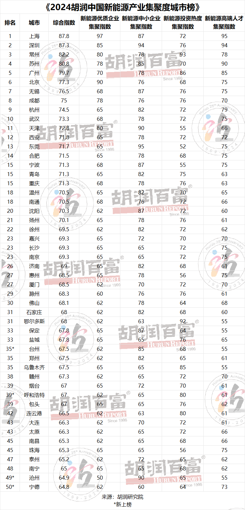 2024胡潤中國新能源產(chǎn)業(yè)集聚度城市榜