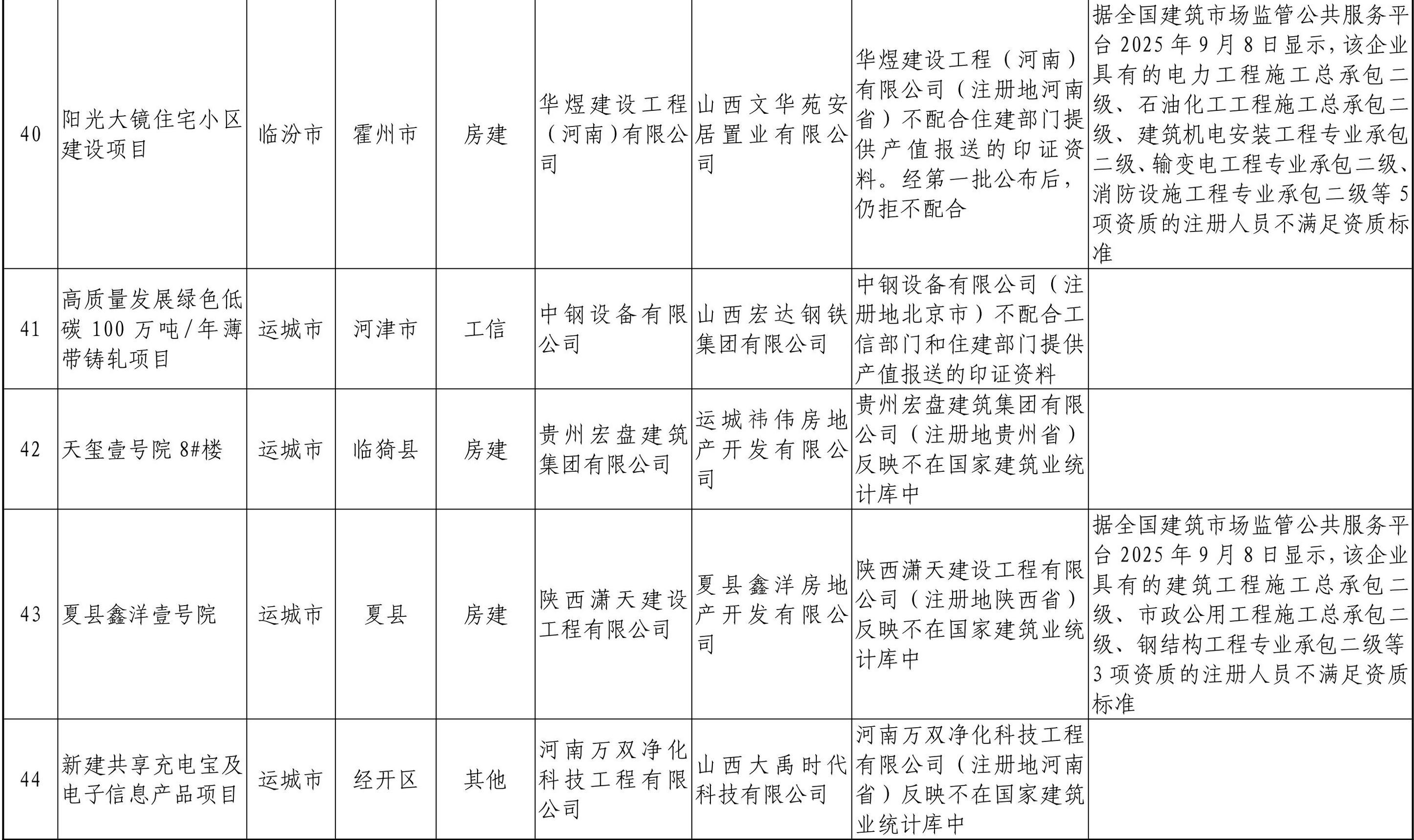 經(jīng)各市建筑業(yè)專班認(rèn)定,現(xiàn)將第二批48個(gè)問(wèn)題項(xiàng)目的有關(guān)情況予以公布。各市建筑業(yè)專班要緊盯問(wèn)題,加大督導(dǎo)服務(wù)力度,做好項(xiàng)目施工產(chǎn)值入統(tǒng)追溯,確保三季度在地產(chǎn)值應(yīng)報(bào)盡報(bào)。