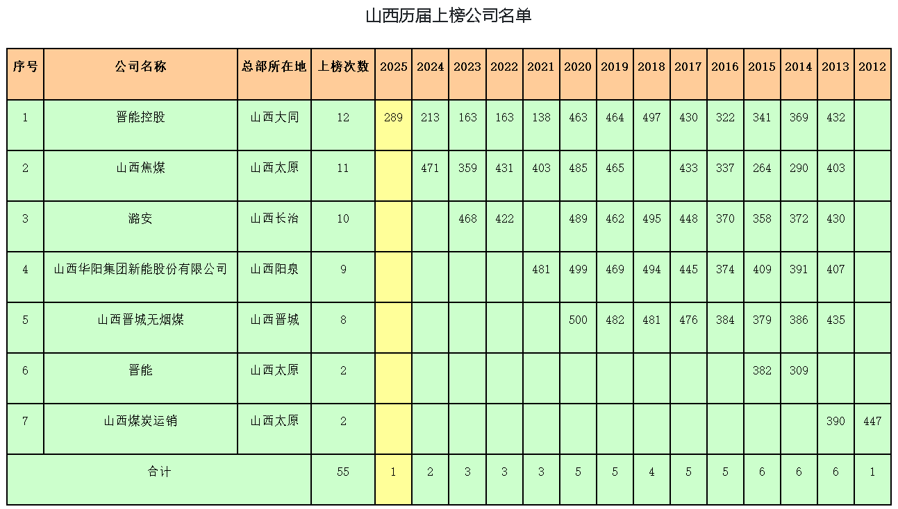 2022年(3家):晉能控股集團(163位)、潞安化工集團(422位)、山西焦煤集團(431位)。