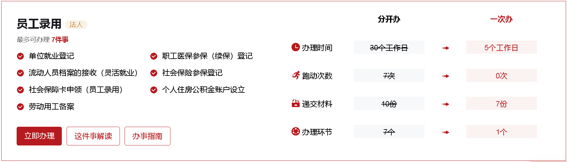據(jù)悉,此次上線的“員工錄用一件事”服務(wù)對(duì)象覆蓋山西范圍內(nèi)所有用人企業(yè),整合人社部門負(fù)責(zé)的單位就業(yè)登記、社會(huì)保險(xiǎn)參保登記、社會(huì)保障卡申領(lǐng)、流動(dòng)人員檔案接收(員工錄用)、勞動(dòng)用工備案,醫(yī)保部門負(fù)責(zé)的職工醫(yī)療保險(xiǎn)參保(續(xù)保)登記,以及住建部門負(fù)責(zé)的個(gè)人住房公積金賬戶設(shè)立在內(nèi)的7項(xiàng)高頻關(guān)聯(lián)事項(xiàng)。以往企業(yè)需分別對(duì)接多個(gè)部門、跑7次窗口、歷經(jīng)30個(gè)工作日才能辦結(jié)的業(yè)務(wù),如今辦理環(huán)節(jié)壓縮至1個(gè),在材料齊全、符合受理?xiàng)l件的情況下,最快1個(gè)工作日即可辦結(jié),最長(zhǎng)不超過(guò)5個(gè)工作日,且全程不收取任何費(fèi)用。