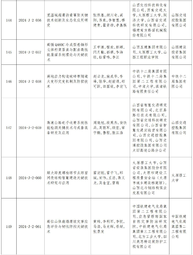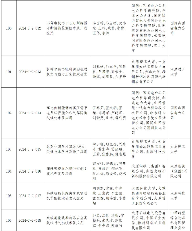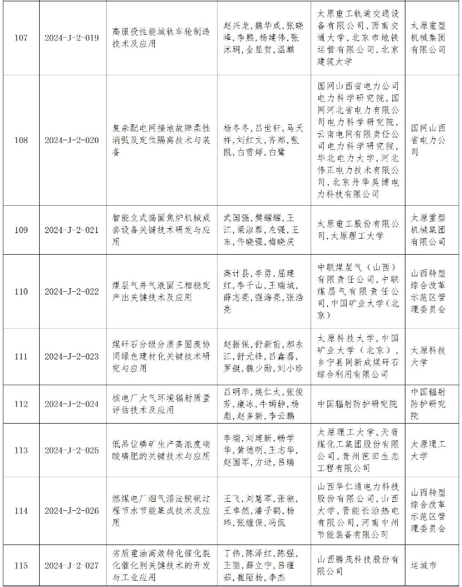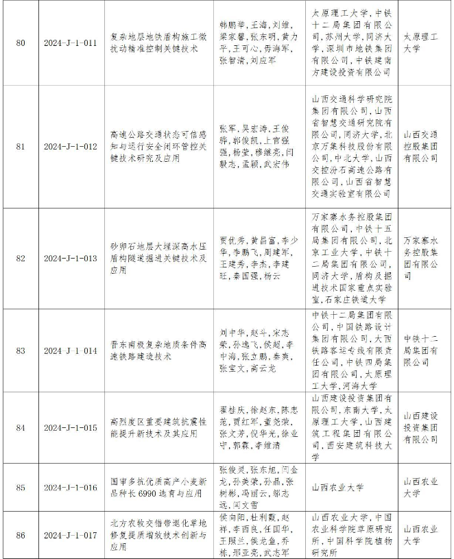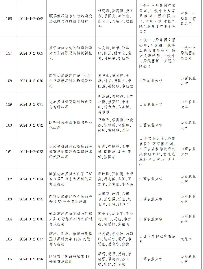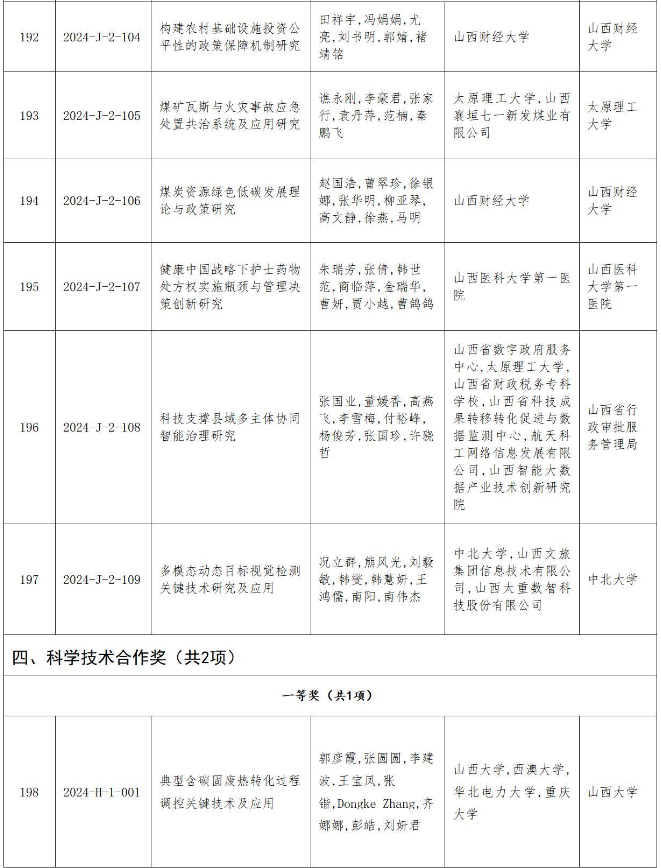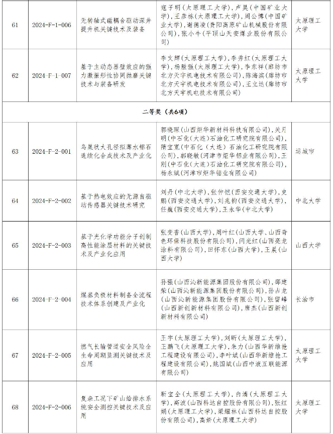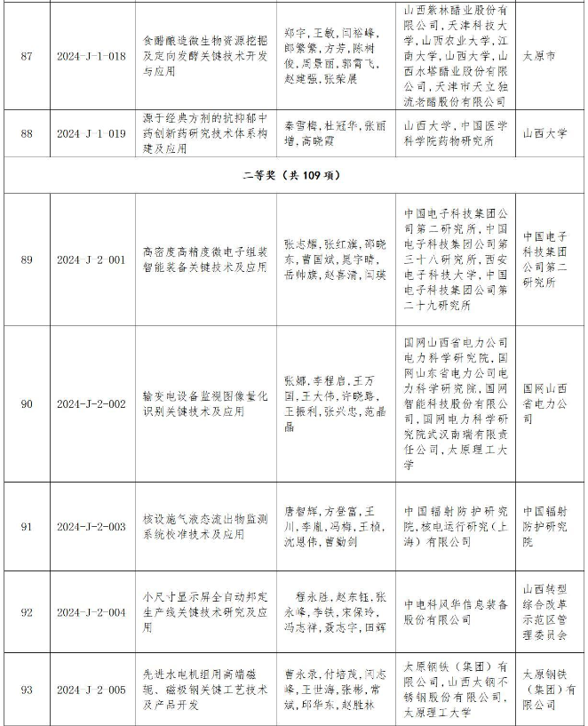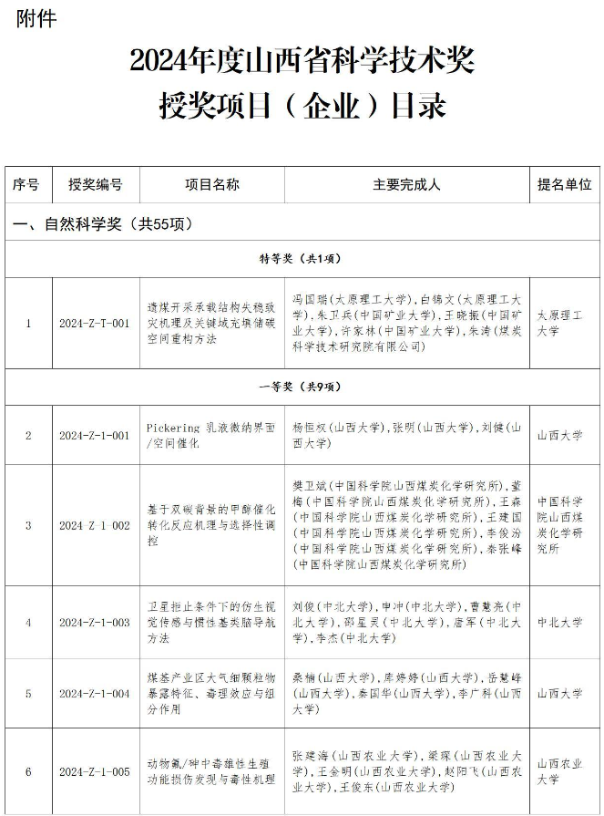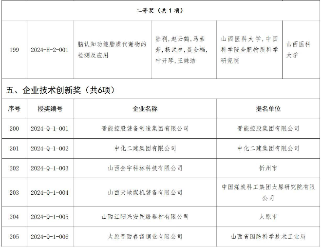 附件:2024年度山西省科學(xué)技術(shù)獎(jiǎng)授獎(jiǎng)項(xiàng)目(企業(yè))目錄
