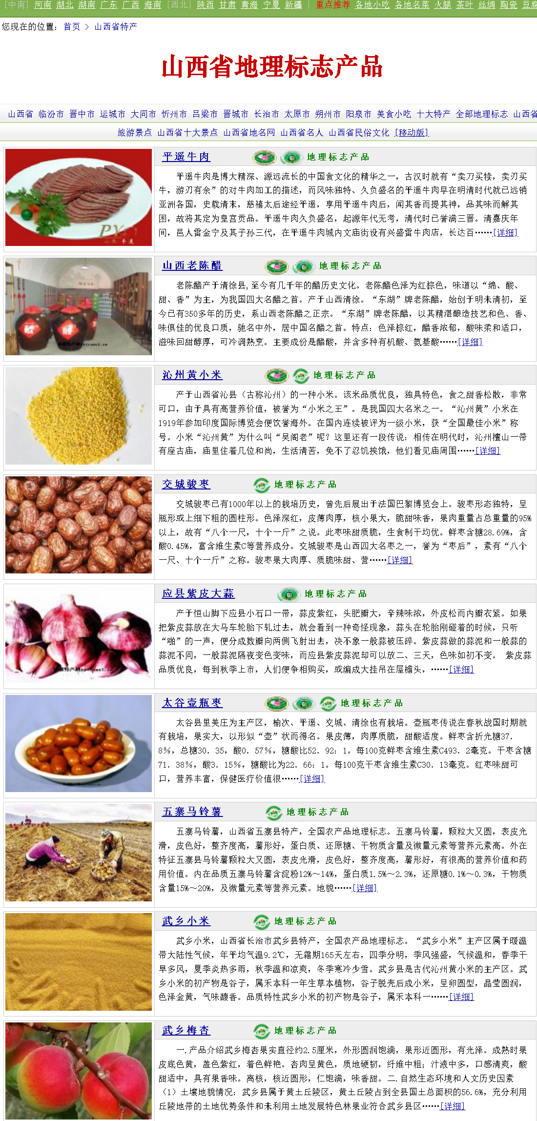 *平遙牛肉 * 山西老陳醋 * 沁州黃小米 * 交城駿棗 * 應(yīng)縣紫皮大蒜 * 太谷壺瓶棗 * 五寨馬鈴薯 * 武鄉(xiāng)小米* 武鄉(xiāng)梅杏 * 代縣大米 * 大寧西瓜 * 王過酥梨 * 壽陽豆腐干 * 澄泥硯 * 平定黃瓜干 *靈丘蕎麥 * 上黨黨參 * 柳林大紅棗 * 太谷餅 * 古縣核桃 * 祁縣酥梨 * 大同黃花 * 晉祠大米* 襄垣手工掛面 * 萬榮蘋果 * 沁水黃小米 * 黎城核桃 * 靈石荊條蜂蜜 * 平遙推光漆器 * 孝義柿子 *左權(quán)綿核桃 * 陽城山茱萸 * 芮城屯屯棗 * 平遙長山藥 * 清徐葡萄 * 靈境莜麥 * 興縣小米 * 運城蘋果* 冀村長山藥 * 芮城菊花 * 平遙酥梨 * 賀家莊鮮桃 * 榆次蘋果 * 上黨高粱 * 平順花椒 *平定冠山連翹茶 * 興縣大明綠豆 * 五寨紅蕓豆 * 陽城花椒 * 澤州黃小米 * 涑川茼蒿 * 右衛(wèi)土豆 * 東趙小白梨* 和順肉牛 * 神池胡油 * 忻州香瓜 * 陽城蠶繭 * 懷仁羔羊肉 * 大同小明綠豆 * 沁州核桃 *義井甜瓜 * 永濟大櫻桃 * 河峪小米 * 右玉羊肉 * 榆社洋槐蜜 * 芮城花椒 * 長子大青椒 * 西回小米* 大寧河雞 * 懷仁陶瓷 * 梧桐山藥 * 隆化小米 * 沁州南瓜子 * 隰縣梨 * 恒山黃芪 *澤州紅山楂 * 壽陽小米 * 長凝大蒜 * 汾州核桃 * 稷山板棗 * 官灘棗 * 平魯紅山蕎麥 * 永濟蘆筍* 萬榮大黃牛 * 洪洞蓮藕 * 熬腦大蔥 * 絳縣山楂 * 壺關(guān)黨參 * 榆社笨雞蛋 * 襄陵蓮藕 *孝義核桃 * 左云苦蕎 * 廣靈大尾羊 * 廣靈小米 * 鄉(xiāng)寧翅果 * 洪井三皇小米 * 嵐縣馬鈴薯 * 長治堆錦* 沁水黑木耳 * 柏籽羊肉 * 清徐老陳醋 * 臨縣紅棗 * 萬泉大蔥 * 臨猗蘋果 * 陽高長城羊肉 *平定荊花蜂蜜 * 潞州黃芩 * 上黨連翹 * 聞喜宰相花饃 * 代縣酥梨 * 芮城蘆筍 * 聞喜蓮藕 * 絳縣大櫻桃* 連伯韭菜 * 泗交黑木耳 * 仙人紅薯 * 神池黑豆 * 神池黍子 * 沁水黑山羊 * 巴公大蔥 *神池胡麻 * 應(yīng)縣陶瓷 * 汾西梨 * 靈丘大青背山羊 * 原平紫皮大蒜 * 隰縣玉露香梨 * 平定砂器 * 晉城荊條花蜂蜜* 曲沃麥茬羊肉 * 廣靈苦蕎 * 廣靈大尾羊羊肉 * 北董大蒜 * 清徐沙金紅杏 * 霍州核桃 * 沁水刺槐蜂蜜 *平陸蘋果 * 天鎮(zhèn)唐杏 * 應(yīng)縣胡蘿卜 * 偏關(guān)羊肉 * 偏關(guān)小米 * 涔山芥菜 * 寧武莜麥 * 神池羊肉* 定襄甜瓜 * 霍州蘋果 * 斗山杏仁 * 析城山小米 * 汾陽釀酒高粱 * 吉縣蘋果 * 應(yīng)縣青椒 *永和條棗 * 岢嵐紅蕓豆 * 大寧紅皮小米 * 繁峙黃米 * 高平大黃梨 * 神池莜麥 * 北景柿子 * 芮城蘋果* 臨晉江石榴 * 南林交蓮藕 * 陽曲小米 * 蒲縣核桃 * 平順潞黨參 * 陵川黑山羊 * 孫家灣香椿 *趙康辣椒 * 杜馬百合 * 陽城桑葚 * 安澤連翹 * 戎子酒莊葡萄酒 * 交城梨棗 * 壺關(guān)旱地西紅柿 * 萬榮三白瓜* 運城鹽池黑泥 * 蒲縣馬鈴薯 * 廣靈畫眉驢 * 七里坡山楂 * 岢嵐柏籽羊肉 * 忻州糯玉米 * 臨縣開陽大棗 *吳王渡黃河鱉 * 運城鹽池大鹽 * 杏花村酒 * 竹葉青酒 *