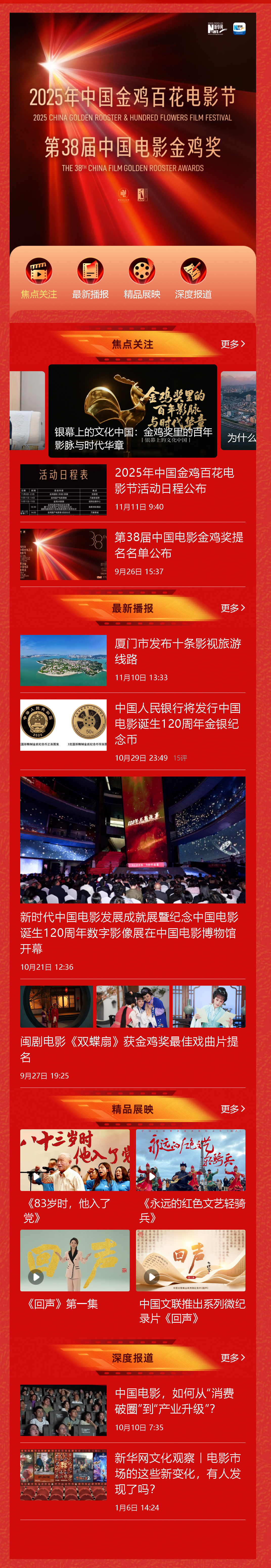 新華社廈門(mén)11月11日電(記者鄭良、吳劍鋒)11日晚,2025年中國(guó)金雞百花電影節(jié)暨第38屆中國(guó)電影金雞獎(jiǎng)在福建省廈門(mén)市閩南大戲院開(kāi)幕。
