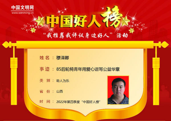 穆澤卿 山西晉中市 85后輪椅青年用愛心譜寫公益華章