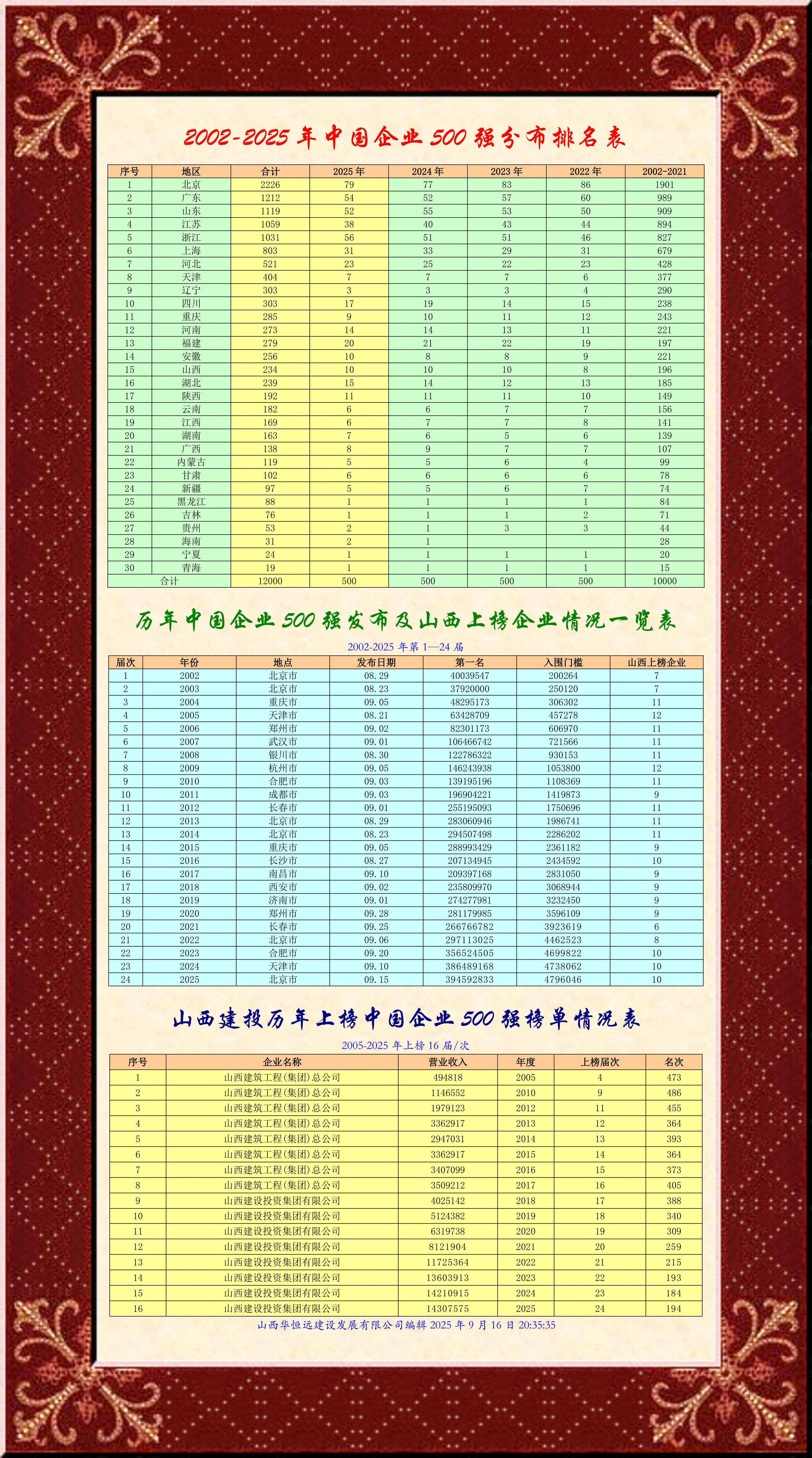 【行業(yè)動態(tài)】2025中國企業(yè)500強發(fā)布?。ǜ桨駟危?/a>2025-09-15